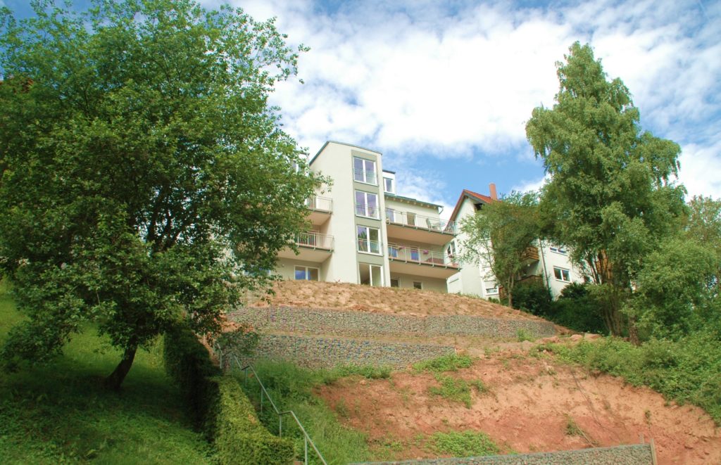 Das Gebäude wurde in traditioneller ökologischer Massivbauweise „Stein auf Stein“ errichtet und ist energetisch auf dem neuesten Stand der Technik. Die sieben hochwertigen Eigentumswohnungen sind modern geschnitten und bieten über ihre großen Fensterflächen sowie von Terrasse oder Balkon eine spektakuläre Aussicht in das weite Tal. Die zentrale Lage macht die Wohnungen zur idealen Adresse für Berufstätige im Rhein-Main-Gebiet, im Aschaffenburger Raum oder im angrenzenden Odenwaldkreis.